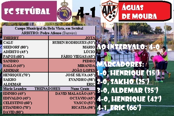 10.ª da competição, a formação sadina goleou o Águas de Moura por quatro bolas
