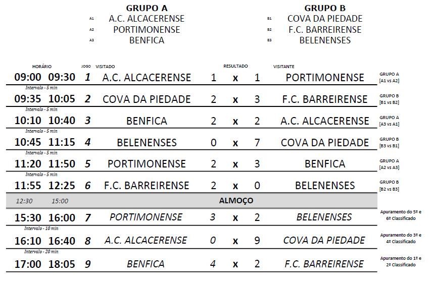 Alcacerense (9-0) e terminou em 3.º lugar.