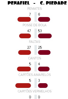 C. PIEDADE: Pedro Alves; Adilson, Daniel Almeida (Ballack, 79’), Willyan Rocha, Evaldo; Soares, Paulo Tavares (Liu, 64’), Robson; Cleo (Sampaio, 64’), Dieguinho e Hugo Firmino.